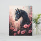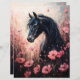 Um cavalo majestoso rodeado por delicadas flores silvestres cor-de-rosa-pinceladas, capturando a graça e a beleza da natureza num cenário macio e romântico.