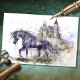 Libere a magia com este magnífico papel de dissociação! Contemplem o cavalo hipnotizante, inspirado na aquarela, enfeitado em sotaques púrpuros cativantes. Abrace o olhar encantador do castelo, e deixe sua criatividade voar em um reino de possibilidades ilimitadas!