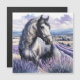 Bonito cavalo branco e cinza em pé num bonito campo de lavanda. Isto foi criado com ai e feito em estilo aquarela.