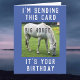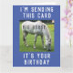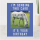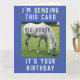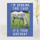 Cartão de aniversário com uma mensagem engraçada de cavalo! Estou enviando este grande cavalo (porque) É seu aniversário. Imagem é uma fotografia de um cavalo branco pairando em um campo.