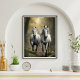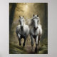 Cavalos Brancos Correndo na Floresta Poster