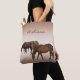 Personalize ou remova facilmente o texto nesta bolsa de tote que contém cavalos marrons pairando em um dia quente de verão, em um fundo de bronze.