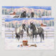 Cavalos de pintura de Cinza Grulla Pinto em uma Fazenda de inverno.