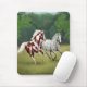 Design original das belas artes de uma pintura e de um cavalo do Appaloosa que galopam no pasto pelo artista Carolyn McFann do estúdio de ronrom de dois gatos em um mousepad do computador da qualidade para tudo que ama cavalos.
