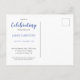 Convide amigos e familiares para compartilhar suas histórias e memórias favoritas com este elegante convite de cartão postal de celebração da vida azul.