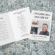 Programa de funeral limpo e minimalista dobrado em cinza e branco, com fontes elegantes. No cobrir, três fotos do seu amado, juntamente com o nome e os anos de vida deles. Dentro você pode escrever o obituário e o programa. No verso você pode adicionar reconhecimentos.