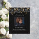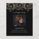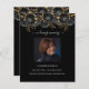 Um clássico fundo negro. Decorado com flores pretas e ouros, florais. Personalize e adicione nome, datas e texto. Adicione uma foto. Funeral/celebração do convite à vida. 1 folha = 1 convite impresso de borda a borda.