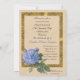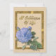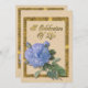 Celebração da vida Convite com um rosa de estilo de vintagem azul solteiro com texto dourado. "Celebração da Vida" Convide a família e os amigos a partilharem um brunch para comemorar e celebrar a vida de um ente querido que passou. Personalize com o nome do seu amado. Leia o texto cuidadosamente e faça quaisquer alterações e adições antes de solicitar as placas