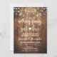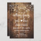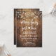 Convite de festa de casamento fuga com fundo de madeira rústica e luzes de corda. Nada sofisticado, apenas amor convite de recepção de casamento rústico.