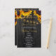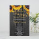 Elegante modelo do programa de cerimônias de bodas rusticais apresentando belos buquês laranja-amarelos brilhantes e cordas de luzes cintilantes em um país de fundo de madeira marrom-escuro. +++++++++++ + Personalize-o com os seus detalhes.++++++++ Adequado para jardim de verão quic de vintagem de países russos | outono caem no exterior.
