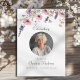 "Celebrando a vida de" Elegante, Branco, Rosa, Roxo, Convite Funeral Fotográfico com uma bela letra de escrita manual. Impressões e download instantâneo. Este convite para o funeral personalizado foi feito para anunciar um serviço de memorial ou celebração da vida com dignidade e graça. Apresentando delicadas flores aquáticas, tipografia elegante, e um espaço para uma foto apreciada, permite compartilhar os detalhes do serviço de uma forma clara e bela. Mais do que um simples convite, é uma sensação que honra a memória do seu amado. O design floral suave traz conforto e calor, criando uma maneira significativa de convidar família e amigos para se reunirem, lembrarem e celebrarem uma vida bem vivida.