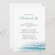 Este convite para a celebração da Vida das Ondas do Oceano é adequado para o amante da praia, barqueiro, surfista e entusiasta da água. Apresenta ondas litorâneas suaves em azul e branco. Perfeito para qualquer funeral, serviço memorial, celebração de vida ou serviço de homenagem.