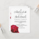 Uma única rosa vermelha profunda cria um design bonito e sincero para este cartão de celebração de vida. O motivo floral elegante torna-o uma escolha significativa para homenagear seu ente querido e compartilhar detalhes de um serviço memorial ou encontro de lembranças. Personalize o texto para criar uma homenagem que reflita a vida deles com amor e dignidade.