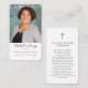 Dimensões de cartão de visita: 3,5" x 2,0". Este simples cartão de oração memorial pode ser dado como guardião numa Celebração da Vida ou num serviço funerário ou enviado como homenagem especial aos que não puderam estar presentes. Personalize este cartão com uma foto favorita e sua escolha de oração ou poema na parte traseira do cartão. Fácil de personalizar.