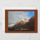 Este convite único a uma Celebração da Vida ou do Serviço Memorial é decorado com a nossa fotografia original de montanhas de arte fina iluminada pelo sol e lindas nuvens - uma fotografia espetacular, enquadrada por uma fronteira castanha avermelhada. Foto original de Alan Socolik. O reverso é castanho avermelhado com texto branco, para combinar. É fácil personalizar. Todos os Direitos Reservados © 2015 Alan & Marcia Socolik.