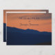 Este simples e elegante convite a uma Celebração da Vida ou do Serviço Memorial é decorado com a nossa fotografia original de um belo céu laranja sobre montanhas e colinas escuras e azuis. O reverso tem a mesma imagem de paisagem, mas é mais claro para que você possa ler o texto. Você pode modificar facilmente o texto na frente e no verso. Foto original de Marcia Socolik, tirada no Vale da Morte, Califórnia. Todos os Direitos Reservados © 2015 Alan & Marcia Socolik