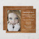 Funeral Memorial / Celebração Do Convite À Vida. Estes convites de simpatia para o funeral apresentam uma fotografia num design de couro falso e castanho vestido. Personalize esta celebração do convite para o funeral de vida com as fotos, nomes e datas de seus entes queridos, detalhes do evento. COPYRIGHT © 2021 Judy Burrows, Black Dog Art - Todos Os Direitos Reservados. Celebração Do Convite À Vida Útil