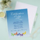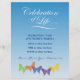 Celebração Memorial do Folheto de Concurso Life em fundo de gradiente azul com borboletas coloridas. Totalmente personalizável com sua data, hora, local, etc. A celebração de um evento de vida é uma forma maravilhosa de partilhar memórias e prestar homenagem a um familiar ou amigo, quer em complemento, quer em vez de um serviço fúnebre tradicional.