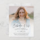 Um convite para o Memorial Funeral da Celebração do Orçamento com a moderna tipografia elegante. Clique no botão editar para personalizar facilmente esta celebração do modelo de vida com seus próprios detalhes e fotografia do seu ente querido.