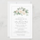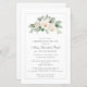 Opção de Documento de Convite de Orçamento. A celebração elegante de um convite à vida apresenta um spray de rosas brancas e folhas verdes de sábio no topo. O nome da pessoa morta está escrito em um texto tradicional. Todo o texto pode ser facilmente editado para criar uma lembrança pessoal.