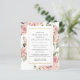 Estilo de Convite Orçamental. A celebração elegante de um convite para a vida apresenta uma rosa rosa rosa empoeirada, floral e estrutura dourada. O nome da pessoa morta está escrito em um texto tradicional. Todo o texto pode ser facilmente editado para criar uma lembrança pessoal.