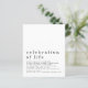 Um valor para o alternativo do ORÇAMENTO em tamanho menor de 4,5 x 5,6" de semirbrilho de 110 lbs, que é de espessura semelhante a um cartão postal (no entanto, não é adequado para uso como cartão postal). POR FAVOR, OBSERVE QUE HÁ UM convite por folha. Celebração do Orçamento do Convite para o Luncheon da Vida. Um simples design com muito espaço em branco para um toque moderno contemporâneo. O cabeçalho é grande em na moda lowercase com os detalhes abaixo. Personalize facilmente o texto para você. Você também pode alterar as cores do texto e do plano de fundo se desejar, por meio da opção personalizar mais nesta design totalmente personalizável.