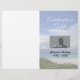 Celebração do Life Memorial Event Program com texto totalmente personalizável. Fundo de fotos moles da praia do oceano em frente, folha dobrada para formar brochura. Personalize todo o texto do seu evento. Clique no modelo de foto e carregue sua própria foto, ou simplesmente exclua-a se você não quiser uma foto. A celebração de um evento de vida é uma forma maravilhosa de partilhar memórias e prestar homenagem a um familiar ou amigo, quer em complemento, quer em vez de um serviço fúnebre tradicional. Impresso de ambos os lados para se dobrar em um livreto. CERTIFIQUE-SE DE PERSONALIZAR AMBOS OS LADOS, NA FRENTE E NO VERSO DA FOLHA.