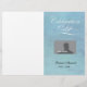 Celebração do programa memorável do evento da vida com texto inteiramente customizável. Fundo azul da aguarela na parte dianteira da parte externa, folha da dobra ao folheto do formulário. Personalize todo o texto para seu evento. Clique sobre o modelo da foto e transfira arquivos pela rede sua própria foto, ou apenas suprima d se você não quer uma foto. Uma celebração do evento de vida é uma maneira maravilhosa de compartilhar de memórias e pagar o tributo a um membro da família ou a um amigo, além do que, ou em vez, de um serviço fúnebre tradicional. Imprimiu ambos os lados para dobrar-se em uma brochura. SEJA CERTO PERSONALIZAR AMBOS OS LADOS.