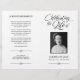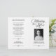 Elegante programa de funeral em preto e branco, com roteiros de caligrafia. No cobrir, uma foto do seu amado junto com o nome e os anos de vida deles. Dentro você pode escrever o obituário e o programa. No verso você pode adicionar reconhecimentos. Dobre você mesmo para um programa prático!