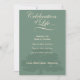 Comemoração do convite para eventos do Life é totalmente personalizável. Silhueta de carvalho em tons de verde-sábio. Personalizar todo o texto. A celebração de um evento de vida é uma forma maravilhosa de partilhar memórias e prestar homenagem a um familiar ou amigo, quer em complemento, quer em vez de um serviço fúnebre tradicional.