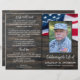Celebrar uma Vida de Serviço e Honra. Honre a memória do seu amado veterano com nossa Celebração Militar do Programa Funeral da Vida. Este manejo cuidadosamente concebido constitui uma homenagem comovente àqueles que dedicaram as suas vidas ao serviço do nosso país. O cobrir da frente apresenta um clássico motivo de bandeira americano contra um pano de fundo de madeira rústica, simbolizando força, resiliência e patriotismo. Nosso programa de funeral oferece um toque pessoal, permitindo que você adicione sua querida foto dos que partiram, criando uma lembrança única e sincera. Este aditamento pessoal garante que o programa não só conta uma história de serviço, como também celebra a viagem única do indivíduo. Ordem de Serviço: O interior do programa inclui uma Ordem de Serviço detalhada, orientando os participantes através da cerimônia com graça e clareza. Ela proporciona espaço para hinos, leituras, elogios, e tributos especiais, permitindo um serviço abrangente e significativo que homenageia a vida e o legado de seu ente querido. Em Simpatia e Lembrança: Durante este tempo de perda, expresse sua mais profunda simpatia e honre a vida de seu ente querido com um programa que reflete seu serviço e sacrifício. Esta celebração do programa de vida é uma homenagem adequada a um herói, assegurando que a sua memória seja preservada e celebrada com dignidade e respeito.