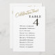 Celebração de tempo! em script de na moda para ajudar seus hóspedes a encontrar sua mesa com esses elegantes cartões modernos de assentos com nomes de hóspedes. Cartões duplos para que os hóspedes possam procurar os dois, frente ou verso pelos seus nomes. Fundo branco e texto preto, e número da tabela com uma sombra de queda para efeito. Várias opções de cores. Ter todos os números de tabela na mesma cor ou cores misturadas de acordo com o tema de cor do evento. A placa impressão na frente e atrás (lado duplo). Se você tiver alguma pergunta design, apenas envie um bate-papo e ficaremos felizes em ajudar.