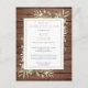 Uma celebração personalizada do convite de lembrança da vida, com um cartão postal com aquarela verde em um fundo de painéis de madeira rústicos. Projetado por Thisnotme©