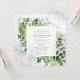 O convite para funeral moderno elegante apresenta uma estrutura botânica verde e cinza quadrada. Uma lavagem de cor de água de cinza macia dá-lhe um ar bastante digno. O nome da pessoa morta está escrito em um texto tradicional. Todo o texto pode ser facilmente editado para criar uma lembrança pessoal.