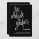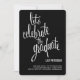 A moda, o estilo moderno convida os hóspedes a "celebrar o formando" em fontes cursivas populares com o olhar de letra de mão. Mostrado em branco clássico a preto, você pode personalizar facilmente a cor de fundo para corresponder ao seu esquema ou tema (também disponível com texto preto). A parte traseira do vazio da placa está disponível para mais personalização ou para adicionar uma foto. Um convite ou um anúncio de festa de formatura único e moderno que é um alternativo excelente para o convite de fotos.