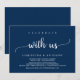 Celebre conosco, Convite, Anúncio de Casamento / Convite, em azul naval rústico e sofisticado, design simples e minimalista. É perfeito para o seu casamento e festa de celebração pós-casamento. Adicione seus detalhes em fonte / letra correspondente.