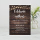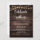Belo convite de casamento rústico moderno, com madeira escura, luzes de corda, tema de cabana rural, Anúncio de Casamento, cartão de convite (Celebre conosco). Isto é perfeito para o seu casamento e festa de celebração pós-casamento. Adicione seus detalhes em fonte / letra correspondente.