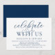 Tema romântico moderno minimalista Caligrafia Simples Script Azul-Marinho, Cartão de convite de jantar ou festa de elopamento de casamento (Celebre conosco). É perfeito para o anúncio do seu casamento e celebração da festa, após o seu melhor dia. Adicione seus detalhes em fonte / letra preta correspondente.