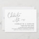 Este é o cartão de convite de fuga de casamento, com design minimalista / letra preta minimalista (Celebre conosco).