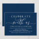 Convite de jantar ou festa de fuga de noiva com caligrafia simples minimalista romântica moderna, azul-marinho (Celebre conosco). É perfeito para o anúncio da sua fuga de noiva e celebração da festa, após o seu melhor dia. Adicione seus detalhes em fonte / letra preta correspondente.