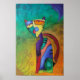 Poster de Gato Celestial Colorida Cubist