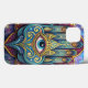 An artistic and detailed representation of the hand of Fatima, a powerful symbol of protection and good fortune, adorned with intricate designs and an all-seeing celestial eye.