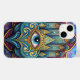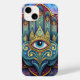 An artistic and detailed representation of the hand of Fatima, a powerful symbol of protection and good fortune, adorned with intricate designs and an all-seeing celestial eye.