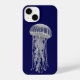 Celestial Jellyfish Dot Art Dreamscape Aesthetic.A mesmerizing dot artwork featuring a delicate jellyfish floating gracefully against a deep blue background. This design blends sealife elegance with a celestial dreamscape aesthetic, creating a calming and almost ethereal visual experience. The intricate dotted details give the jellyfish a glowing, cosmic feel, inspired by ocean depths and starry skies.