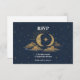 Elegant celestial wedding RSVP card featuring a gold moon and stars over a navy blue night sky. This 'written in the stars' response card is the perfect match for your celestial wedding invitation. Easy to customize with your reply date.