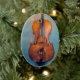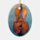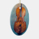 Cello com fundo azul texturizado e luzes de fada mágicas em um Enfeites de natal cerâmico. Perfeito para um violoncelista ou amante de música clássica!
