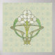 Celtic art deco floral design três flores brancas desbotadas sobre um fundo verde padronizado