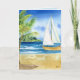 Bela cena de praia com veleiro e palmeira. Tão relaxante e perfeito para enviar correspondência ou presentear amigos e familiares.
