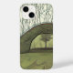 Uma cena de acampamento sereno com uma tenda na floresta em frente a um lago.
