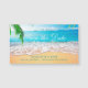 Este ímã de Salve a Data apresenta uma bela cena de praia com areia, ondas, galhos de palmeira nos cantos e o horizonte. Este design de aparência tropical é perfeito para um Casamento de Verão, Casamento na Praia, Casamento à Beira-Mar, ou Casamento de Destino. As cores são brilhantes, mas suaves, e a cena relaxante complementa o texto elegante.